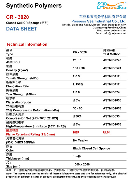| Type | Hardness | Density | Tensile Strength | 25% Compression Deformation | Flame Retardant Rating | Size |
